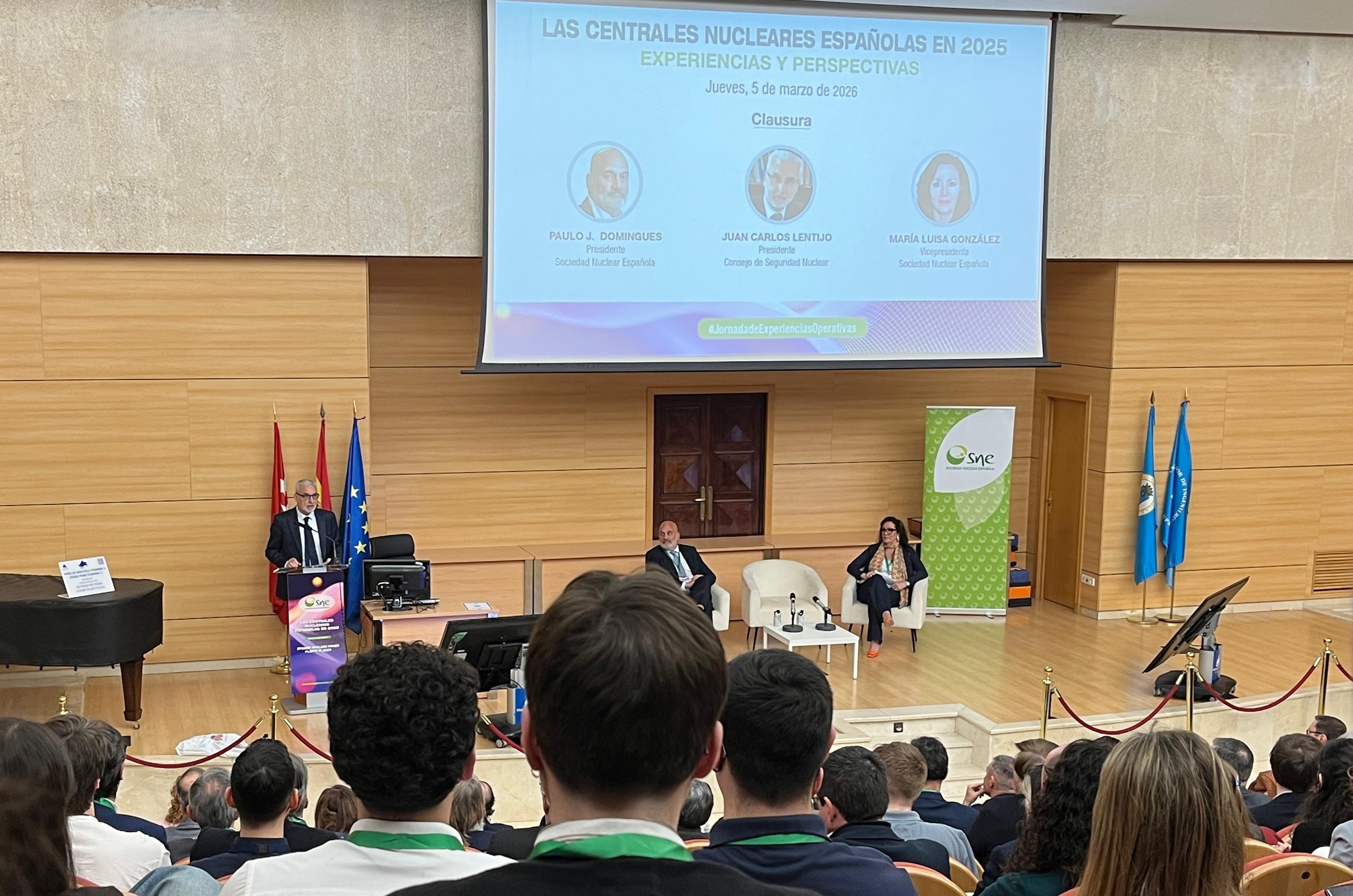 El presidente del Consejo de Seguridad Nuclear (CSN), Juan Carlos Lentijo, ha participado en el acto de clausura de la XXXVII Jornada “Las Centrales Nucleares españolas en 2025. Experiencias y Perspectivas”, organizada por la Sociedad Nuclear Española (SNE), con una intervención centrada en la actuación del regulador durante el último año y en los principales retos que marcarán la agenda de 2026.